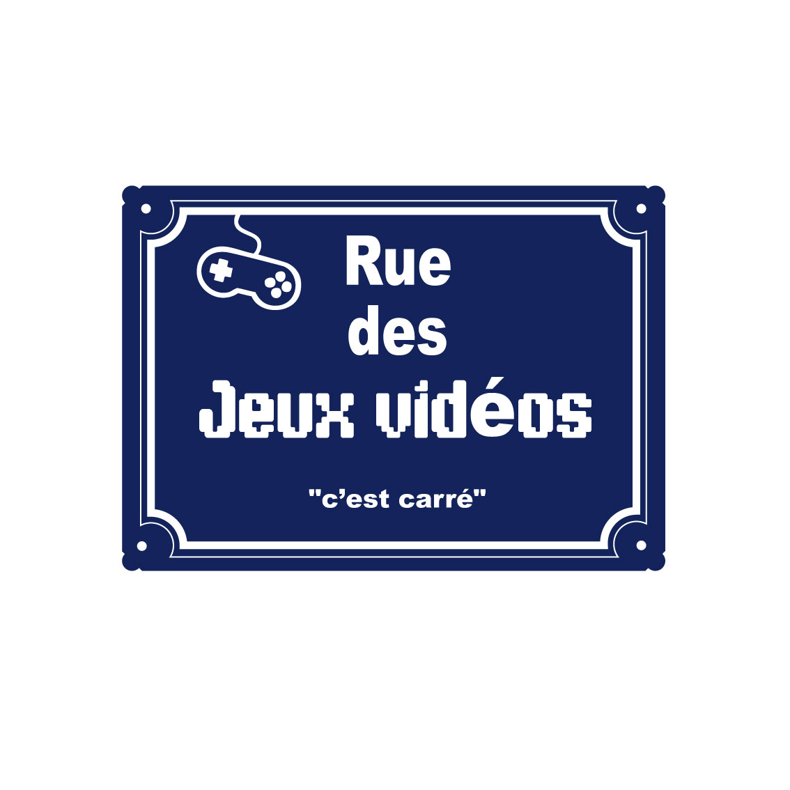Plaque métal humoristique, Rue des jeux vidéo "C'est carré".